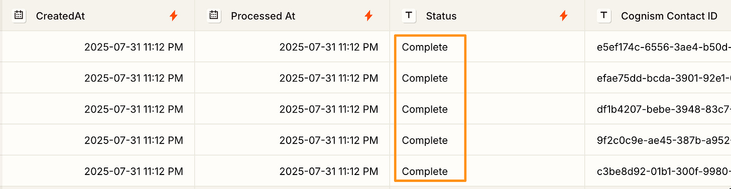 When building a system to fetch outbound signals from a third-party API, I use a table to manage each record’s lifecycle.