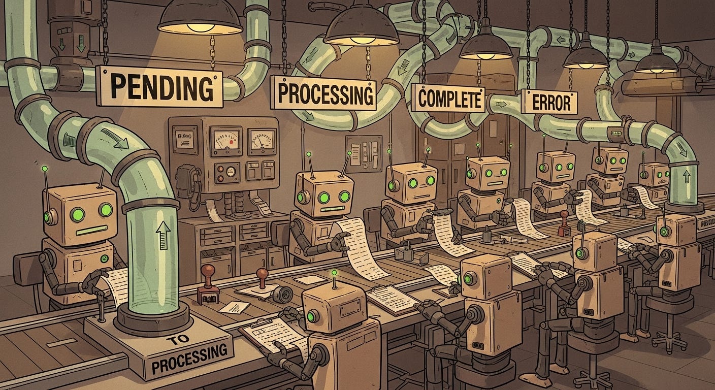 The table becomes a buffer—a place where systems meet and async work can wait its turn.