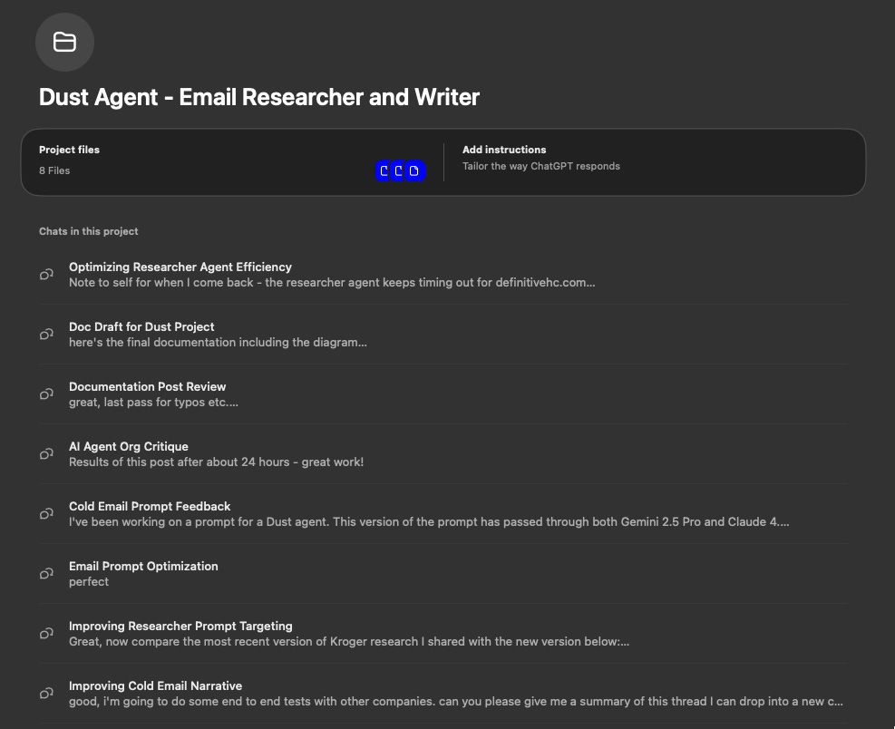 ChatGPT Projects allows you to consolidate chats, files, and other artifacts into a collection. It’s more than just a UI organizational tool—it also solves the problem of persistent memory across separate chats and files.