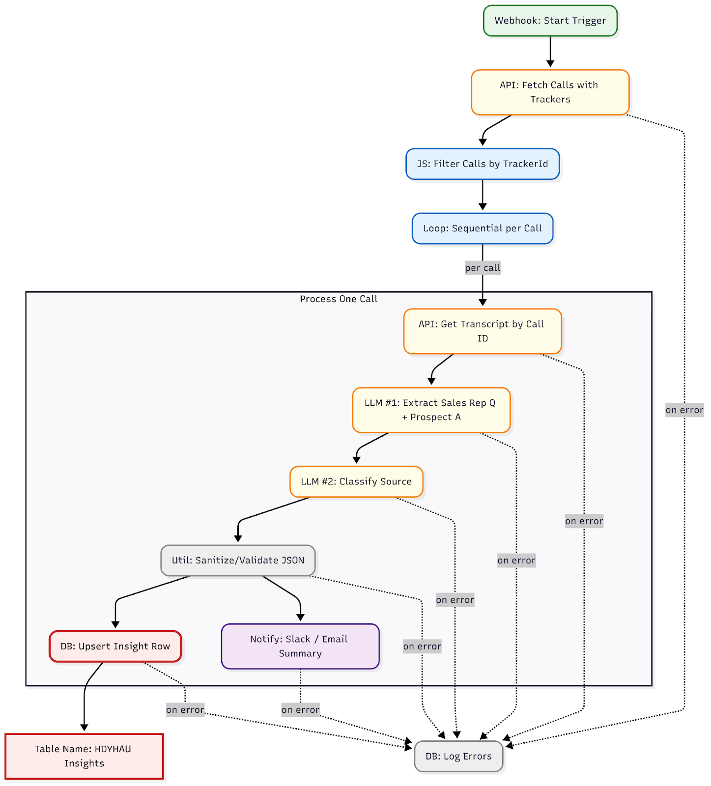Idempotency: upsert by call_id to avoid duplicates on reruns.