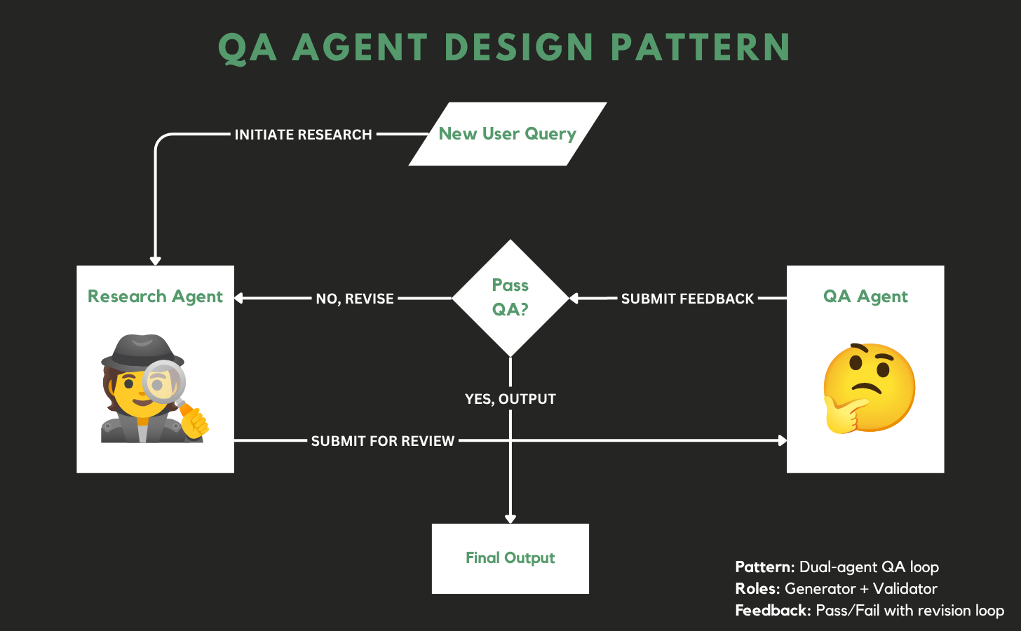 The QA Agent’s job is to stress-test that work against a quality standard and push back.